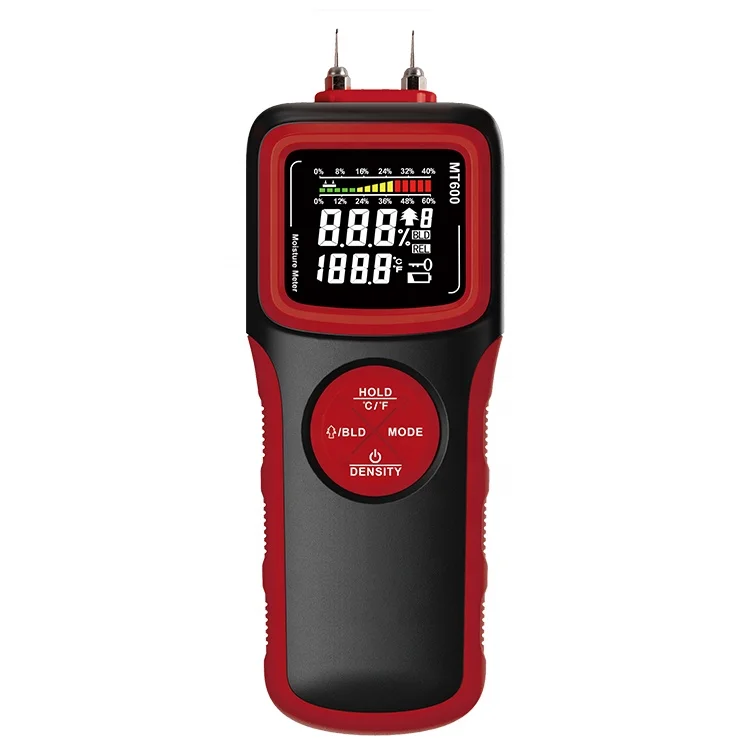 | Other Features | - Pin and pinless mode measurement two-in-one - 9 wood density grades - Low battery indication - Auto temperature compensation - Auto power off in 5 minutes without operation 10.Operating Environment: •Operating temperature: 0°C-40oC(32oF-104°F) •Operating humidity: 0-90%RH Storage temperature: -10°C-50°C(14°F-122°F) |